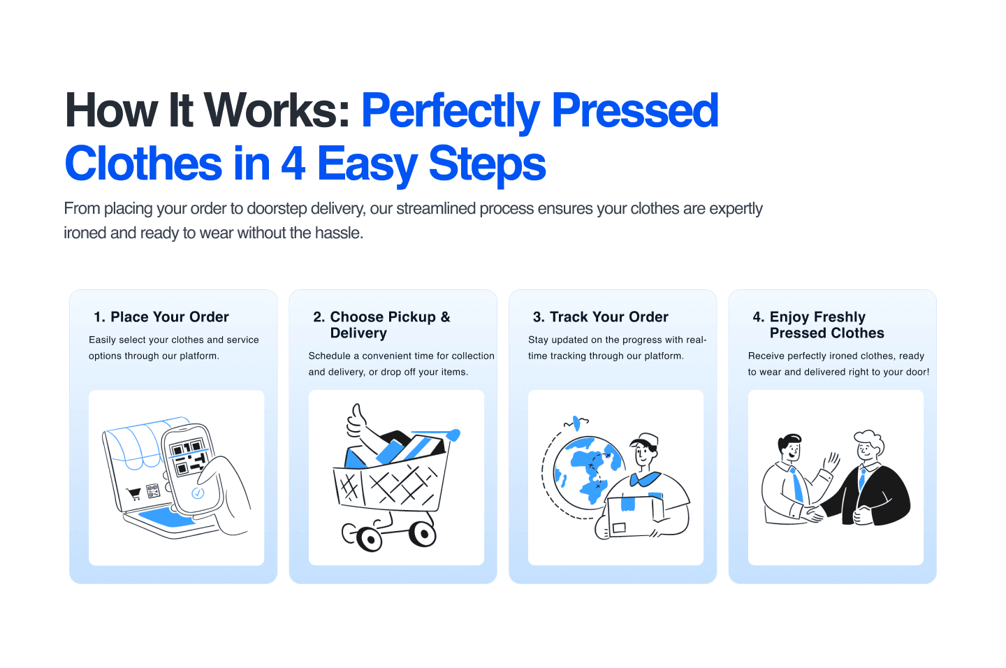 Project Goals Develop a user-friendly website that highlights the services, pricing, and booking process. Create a seamless mobile app for scheduling pickups, tracking orders, and managing user preferences. Ensure a cohesive design that reflects the premium quality of the Just Iron brand.