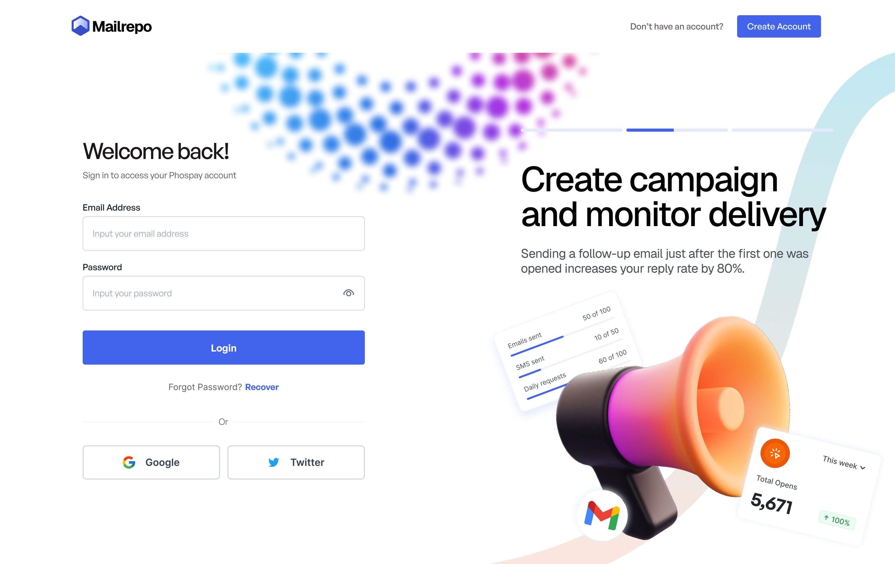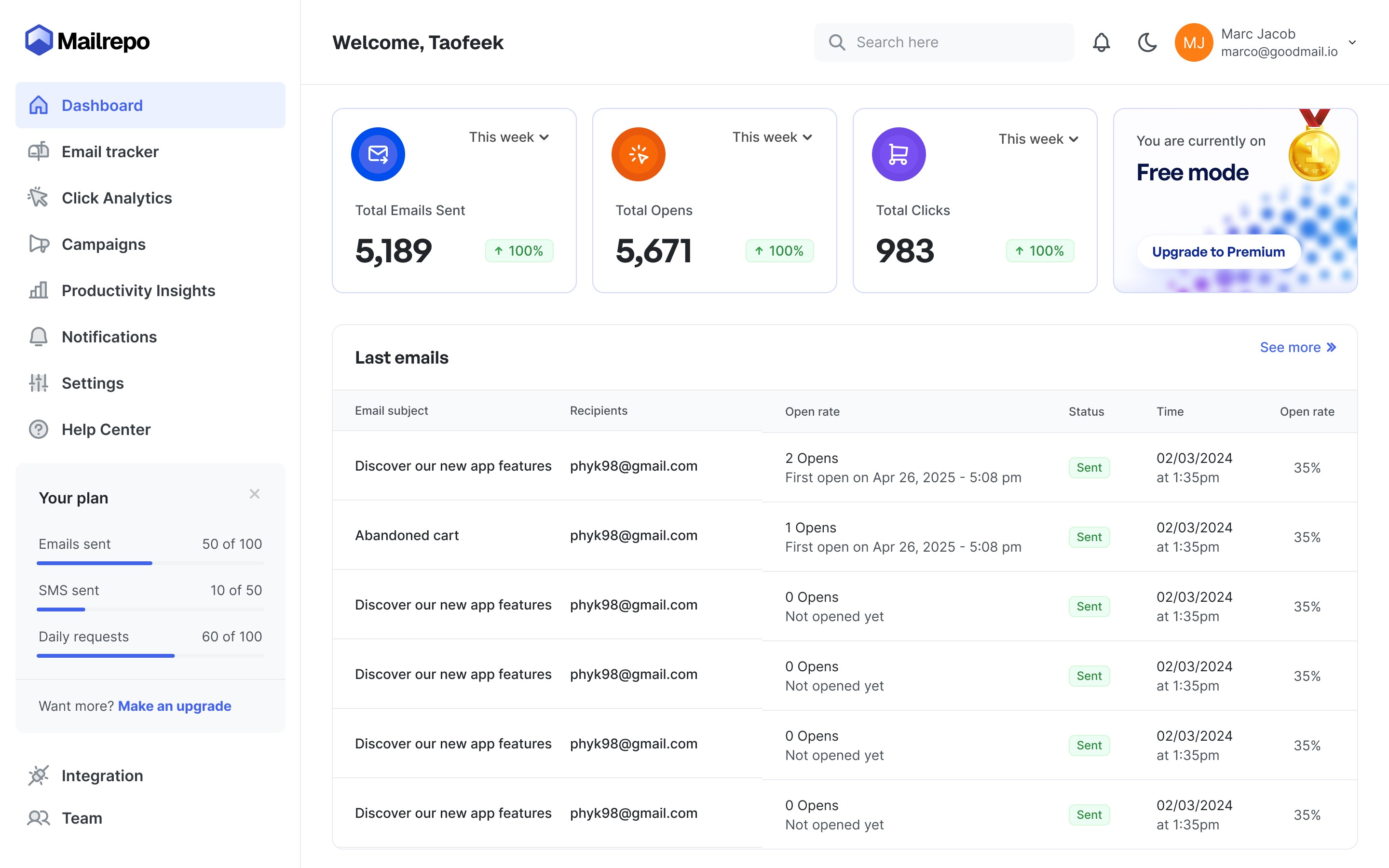 Problem: Today, millions of emails are sent without the sender ever knowing if they were opened, read, or ignored. For creators, job applicants, employees, and many other email users, this lack of insight often leads to missed opportunities, uncertainty, and poor follow-up strategies. Personally, during my job application journey, not knowing the status of sent emails was a recurring frustration that inspired the creation of this solution. Solution: Mailrepo is a lightweight and user-friendly mail tracking tool designed to give users real-time feedback on their sent emails. It provides instant insights such as whether an email was opened, how many times it was viewed, and when. With Mailrepo, users can follow up smarter, feel more in control of their communications, and improve their chances of success.
